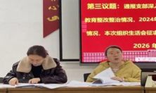 时尚传媒学院 讯 为深入学习贯彻习近平新时代中国特色社会主义思想,全面贯彻落实党的二十届四中全会精神,巩固拓展学习教育成果,严肃党内政治生活,强化党员党性修养,切实把支部战斗堡垒作用和党员先锋模范作用落到实处,时尚传媒学院学生第二党支部于2026年3月16日下午17:15在艺术楼430党员活动室召开2025年度组织生活会暨民主评议党员大会。会议由党支部书记杨丹主持,学院党委委员、办公室主任宇文利红列席指导,党支部全体党员参加会议。