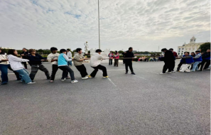 比赛现场气氛热烈非凡,各学院代表队斗志昂扬、蓄势待发。随着裁判一声哨响,时尚传媒学院的参赛队员们迅速进入状态,他们紧握长绳,双脚蹬地,身体后倾,使出浑身解数奋力拉扯,队员们的呐喊声、啦啦队的助威声交织在一起,响彻整个赛场,面对强劲对手,队员们毫不退缩,齐心协力扛住压力,每一次发力都凝聚着团队的力量,每一声呐喊都彰显着必胜的决心。