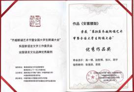 2024年12月获得“第26届齐越朗诵艺术节暨全国大学生朗诵大会优秀作品奖”