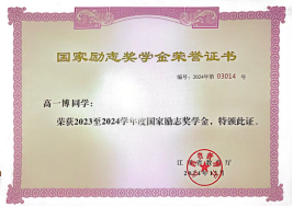 2024年12月荣获国家励志奖学金