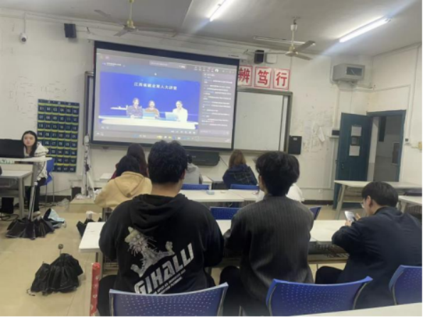 活动当晚,各教室气氛浓厚,同学们通过抖音扫码进入直播间,全程专注收看。钟鲤礼副主任系统讲解了赣州毕业生就业补贴、12个月免费住宿申请、生活及交通补助,以及创业场地免租、贷款贴息等政策,帮助同学们全面掌握相关利好。随后的直播带岗环节,多家赣州优质企业亮相,介绍岗位需求与发展前景,搭建了便捷的线上对接平台。