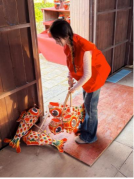 在实践期间,李思娜主要承担景区营销宣传、新媒体推广、春节活动拍摄及表演道具管理等工作。在岗位上,在工作人员的带领下,她系统学习了栗园围的历史渊源与客家文化内涵,真正读懂了围屋一砖一瓦背后的故事,也深刻认识到,文旅宣传不仅是推介景点,更是对客家文化的守护与传播。